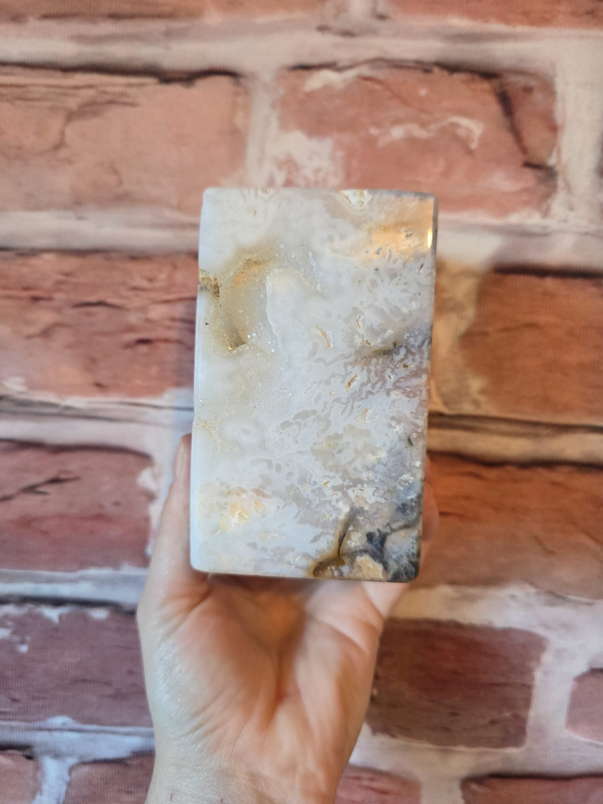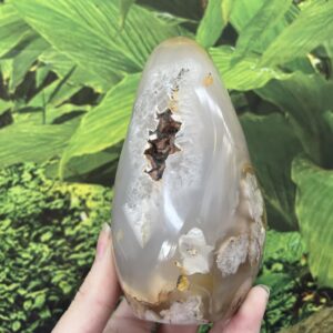 Agate, in general, is believed to be a great balancer when one keeps it close in life. It is a stone that helps one stay rooted, connected and positive. Plume Agate strengthens one from within, improves memory and spiritual connection.